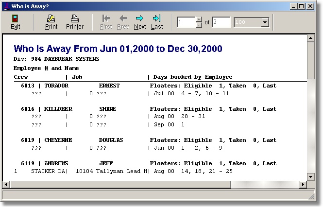 Report Options - information can be selected by various sorting options such as Seniority, Department, Company, Employee name, etc.