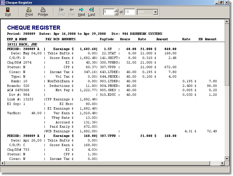 Note: The word 'Cheque' may used in the documentation as a generic reference to the pay records (which can be 'C'heques, 'D'irect deposits or 'F'iller (benefits only) type records).